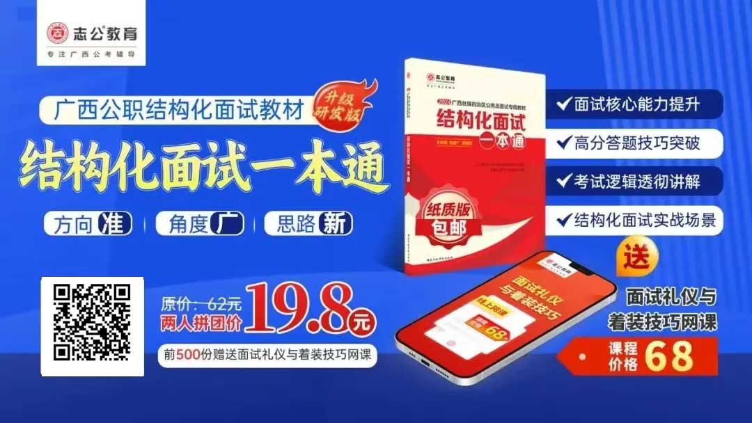 廣西區(qū)考面試準(zhǔn)備需緊扣本土特色,強化邏輯表達和實務(wù)能力,同時注重細節(jié)(如資格復(fù)審材料、禮儀)。建議從現(xiàn)在起每天練習(xí)2-3套題,持續(xù)積累廣西熱點案例,爭取面試高分!資料已經(jīng)為大家準(zhǔn)備好了,快去看看吧!