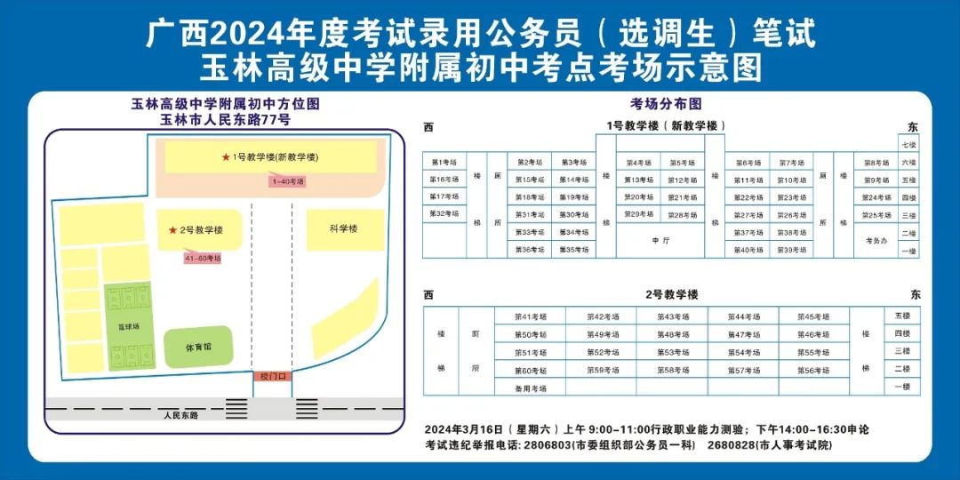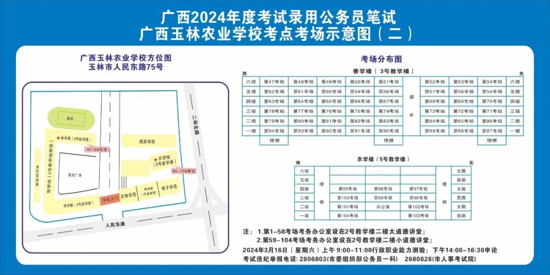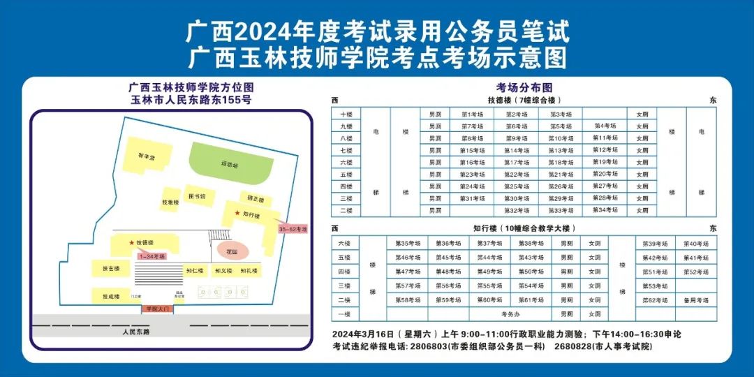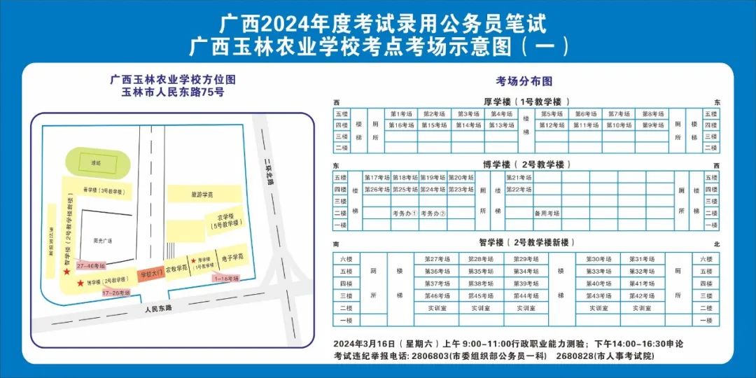 請及時(shí)登錄“廣西人事考試網(wǎng)”打印筆試準(zhǔn)考證并妥善保管,仔細(xì)查看準(zhǔn)考證上的考點(diǎn)信息。本次考試玉林考區(qū)共設(shè)10個(gè)考點(diǎn),各考點(diǎn)名稱、考點(diǎn)詳細(xì)地址如下:
