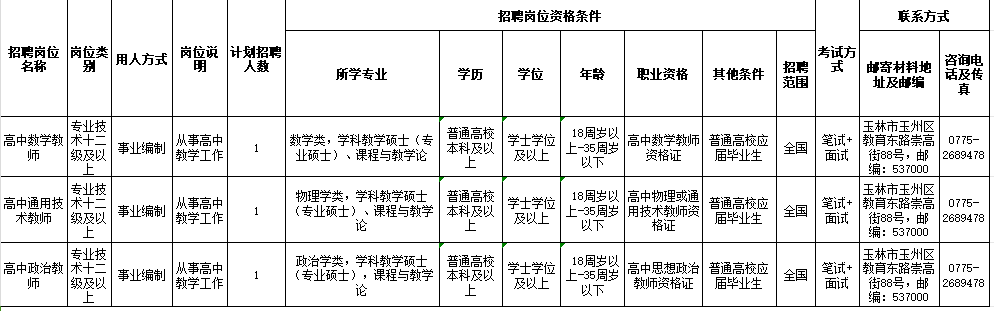 具體招聘信息請瀏覽玉林市人社局網(wǎng)站相關公告,以《2024年秋季期玉林市教育局直屬學校赴廣西師范大學公開招聘教師公告》為準。