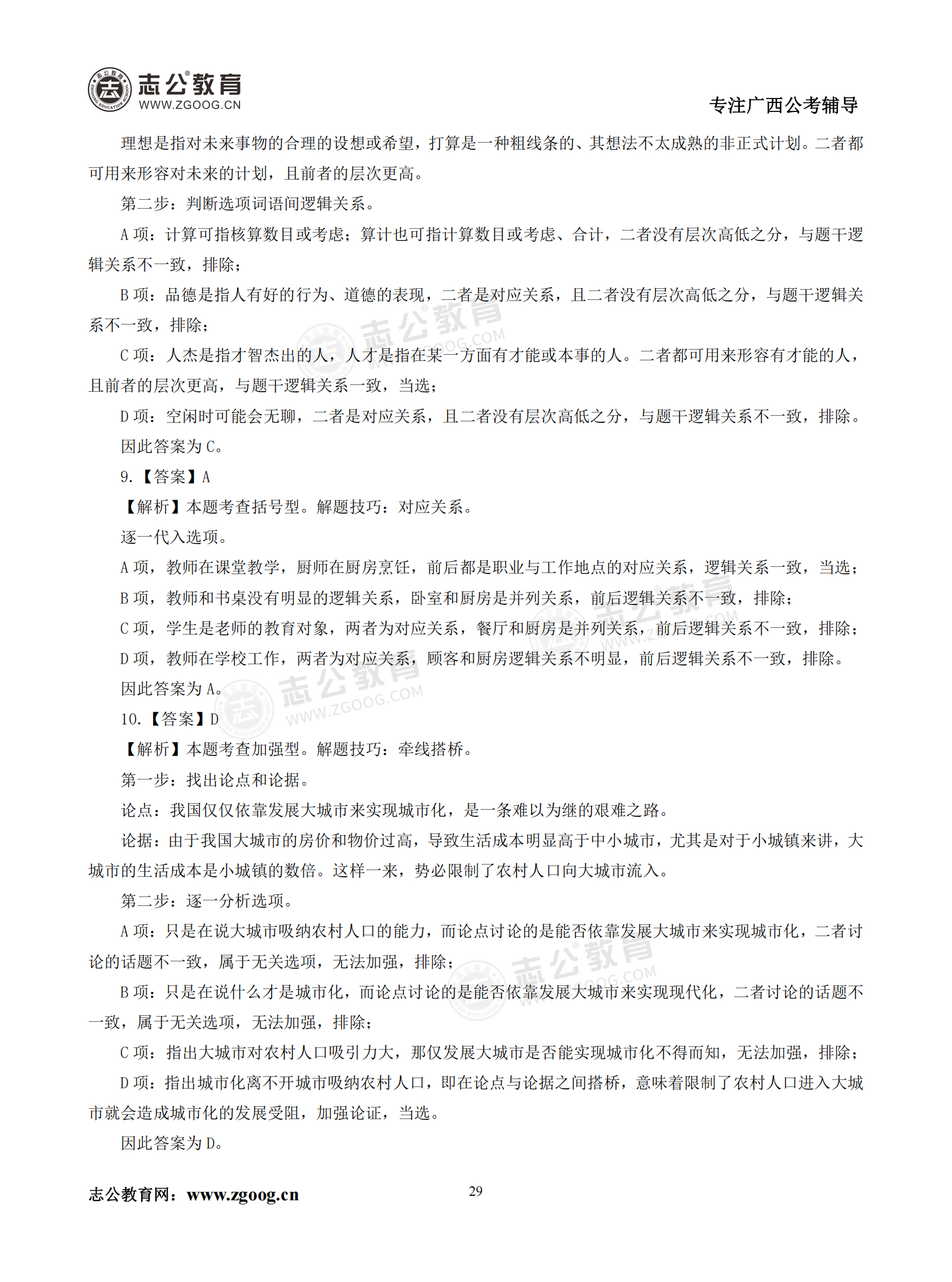 【公考模塊練習】判斷推理題一(答案)
