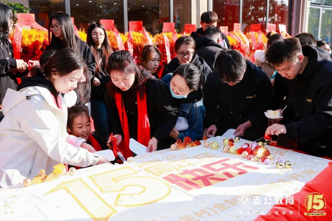 這個(gè)蛋糕不僅象征著志公走過(guò)的15個(gè)輝煌歲月,更代表了志公未來(lái)更加美好的明天。在場(chǎng)的所有員工都分享了這份喜悅和甜蜜,共同祝愿志公教育越來(lái)越好。