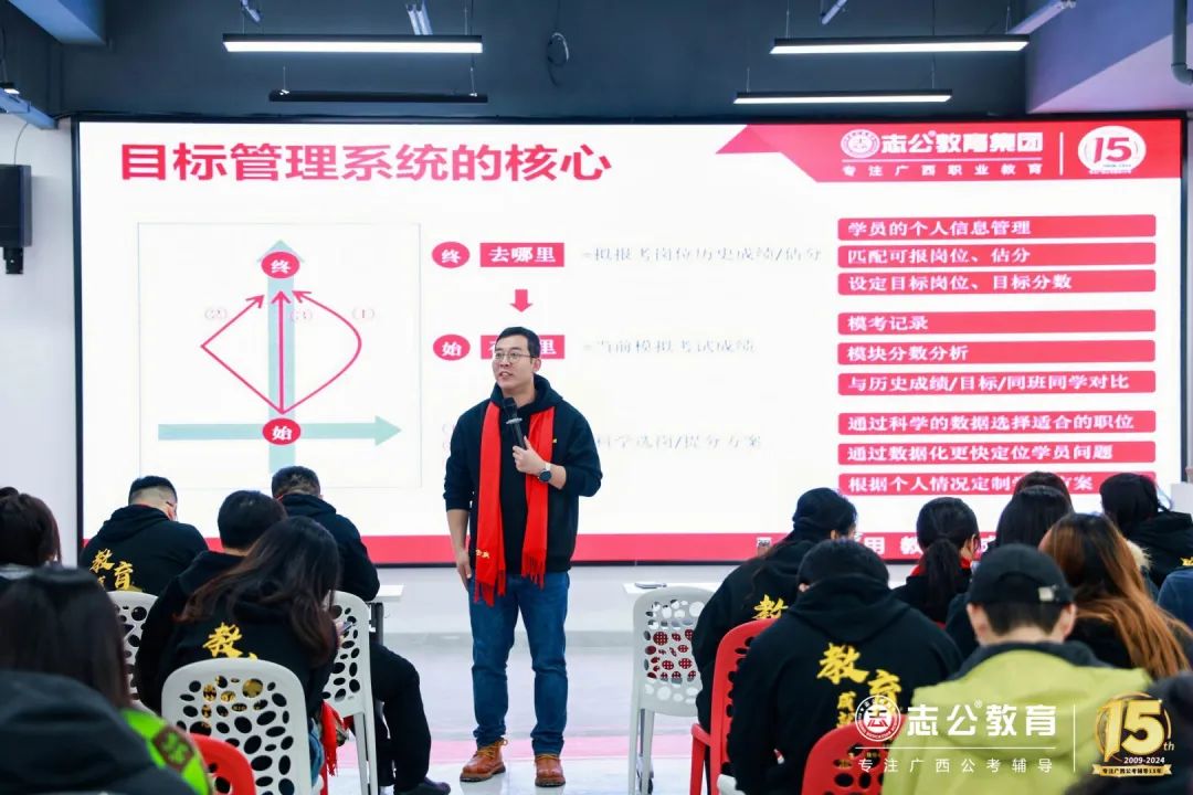 一直以來(lái),志公教育都秉承著“12條企業(yè)文化核心價(jià)值觀”,包括客戶原則——以學(xué)員為中心”、“管理原則——人人都是經(jīng)營(yíng)者”等12項(xiàng)原則,扎根廣西本土公考,全力服務(wù)每一位志公學(xué)員。在董事長(zhǎng)李勇的正確領(lǐng)導(dǎo)下,在廣大學(xué)員的支持下,在全體員工的共同努力下,志公教育從無(wú)到有,從小到大,不斷夯實(shí)發(fā)展基礎(chǔ),贏得了客戶的信賴和品牌形象。全體志公人將堅(jiān)定目標(biāo)齊奮斗、凝心聚力再出發(fā),為志公高質(zhì)量發(fā)展再立新功。