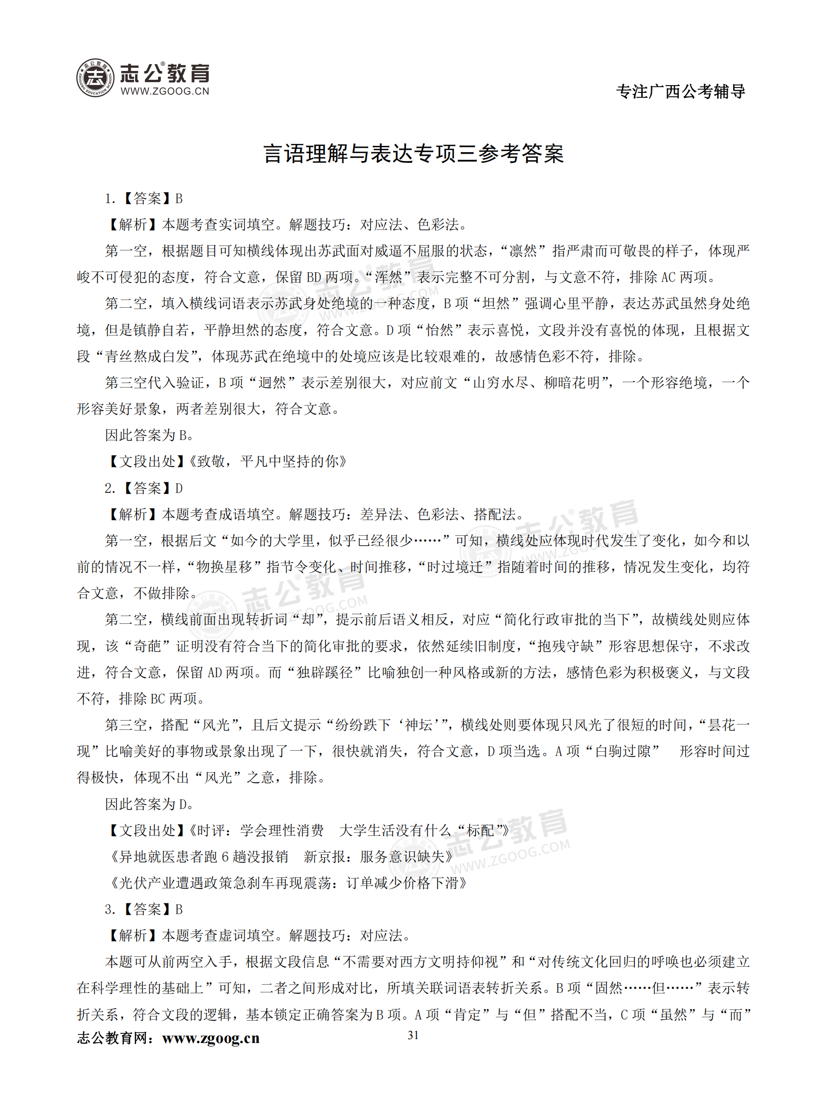 【公考模塊練習(xí)】言語理解題三(答案)