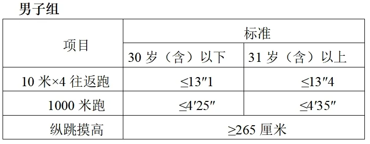 研究生及以上學(xué)歷報(bào)考人員參加體能測試三項(xiàng)內(nèi)容中有兩項(xiàng)達(dá)標(biāo)的,視為合格。非研究生及以上學(xué)歷報(bào)考人員體能測試三項(xiàng)全部達(dá)標(biāo)方為合格。