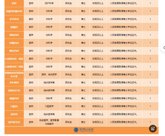 2本科生:見習期薪資約3900—4500元/月,定崗后薪資按國家有關規(guī)定享受相應級別的工資、績效獎金。已取得住院醫(yī)師規(guī)范化培訓合格證書的本科學歷者,在人員招聘、職稱晉升、崗位聘用、薪酬待遇等方面,與臨床醫(yī)學、中醫(yī)專業(yè)學位碩士研究生同等對待。