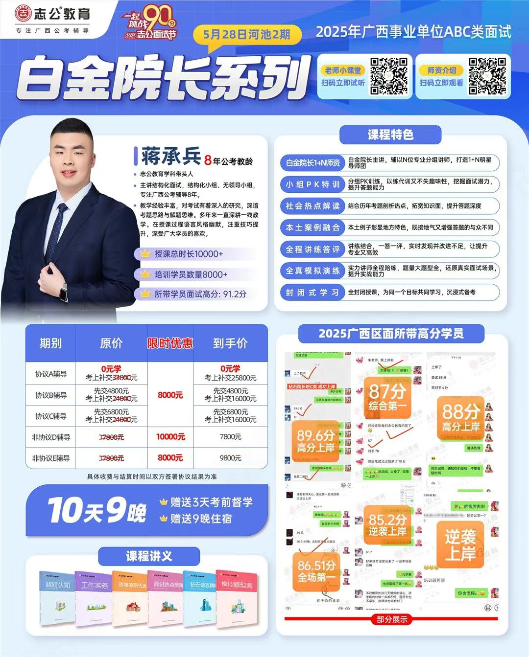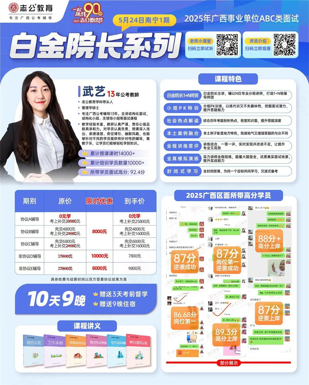 2025年廣西事業(yè)單位ABC類面試白金院長系列課程,匯聚頂尖師資,打造科學體系,為每一位考生提供高效、精準、貼心的備考支持。