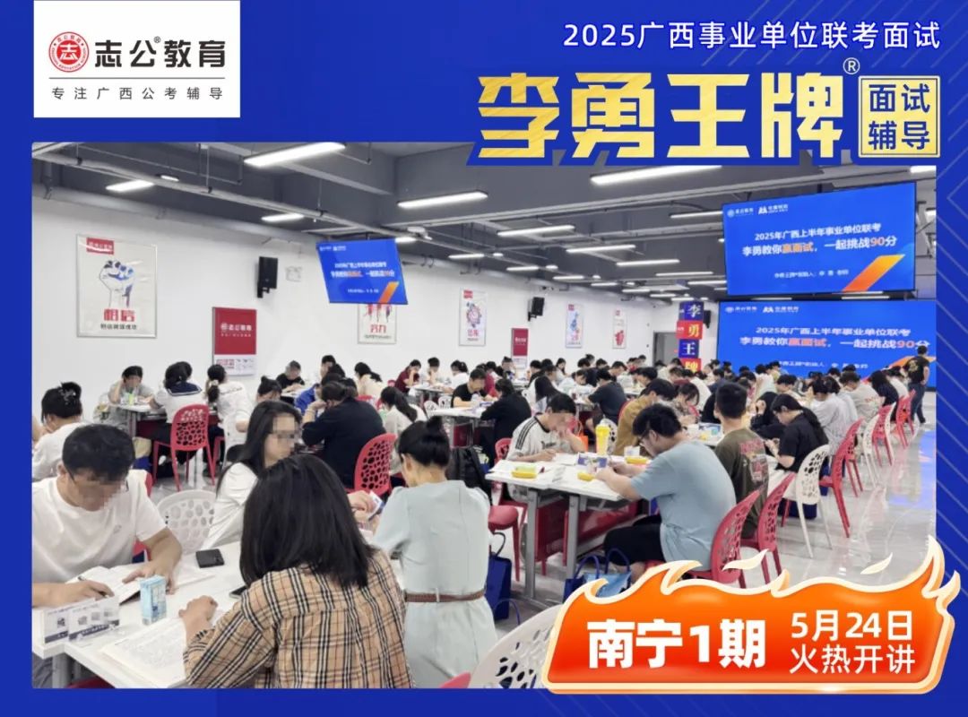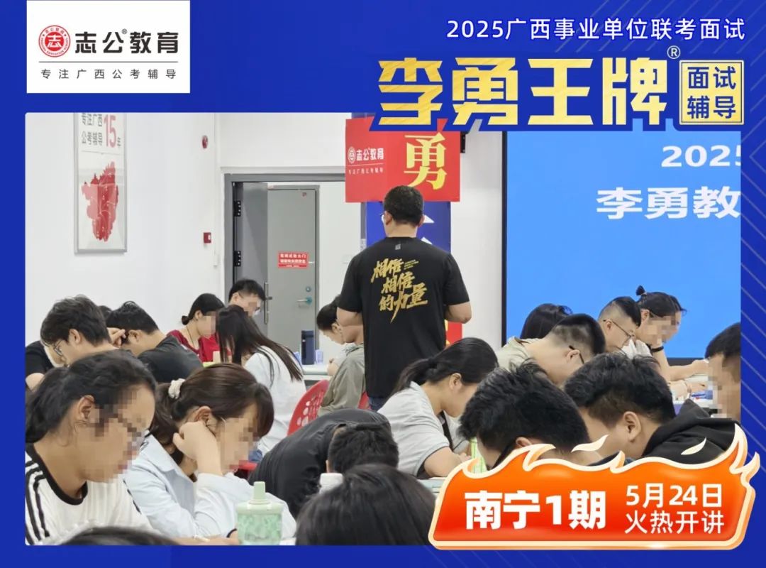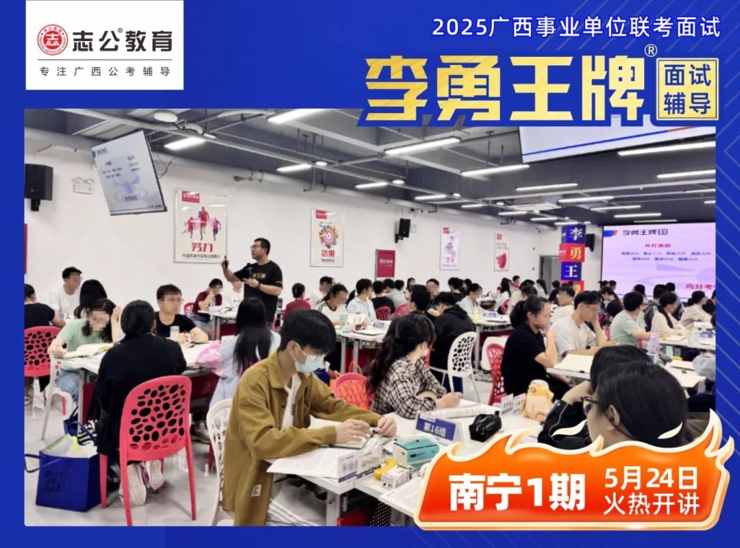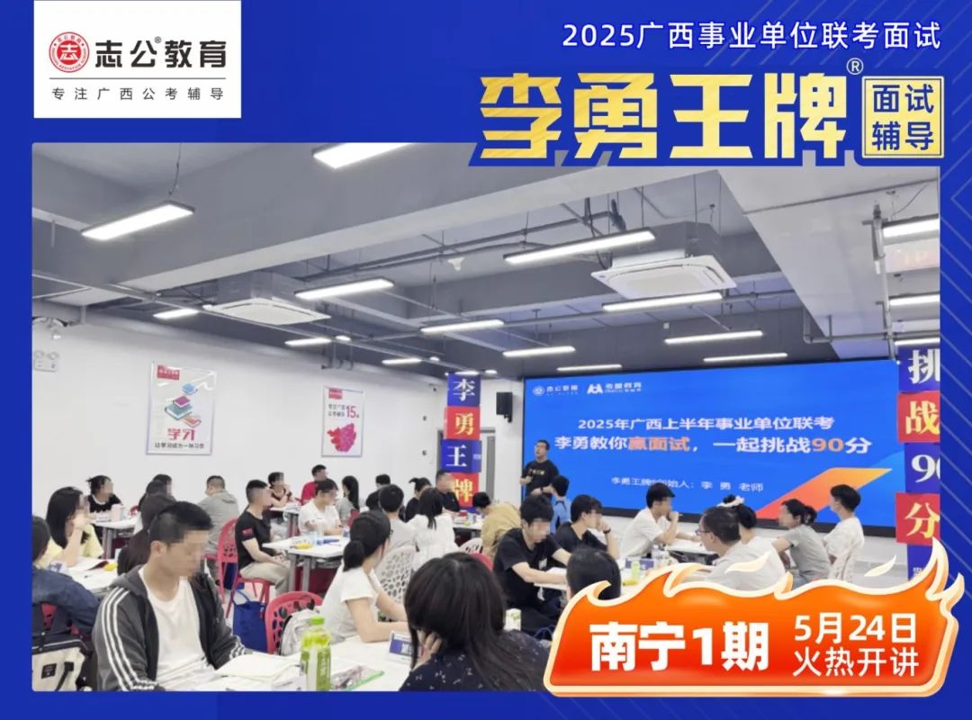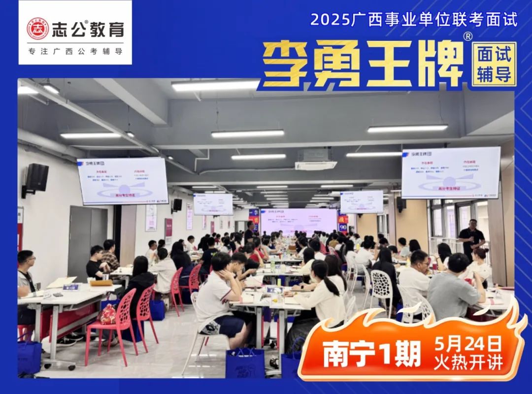 繼志公教育&李勇王牌®班教研室5月17日發(fā)布修改招生規(guī)則的通知后,各位未來“橘”長們,翹首以盼的時刻終于來啦!5月24日,志公教育李勇王牌®班——改革后的首個開班,在南寧火熱啟幕!現場學習氣氛爆棚,李勇老師與學員高頻互動,學員們直呼 “學到停不下來”!這不僅是一場面試特訓,更是一次思維與能力的雙重蛻變!