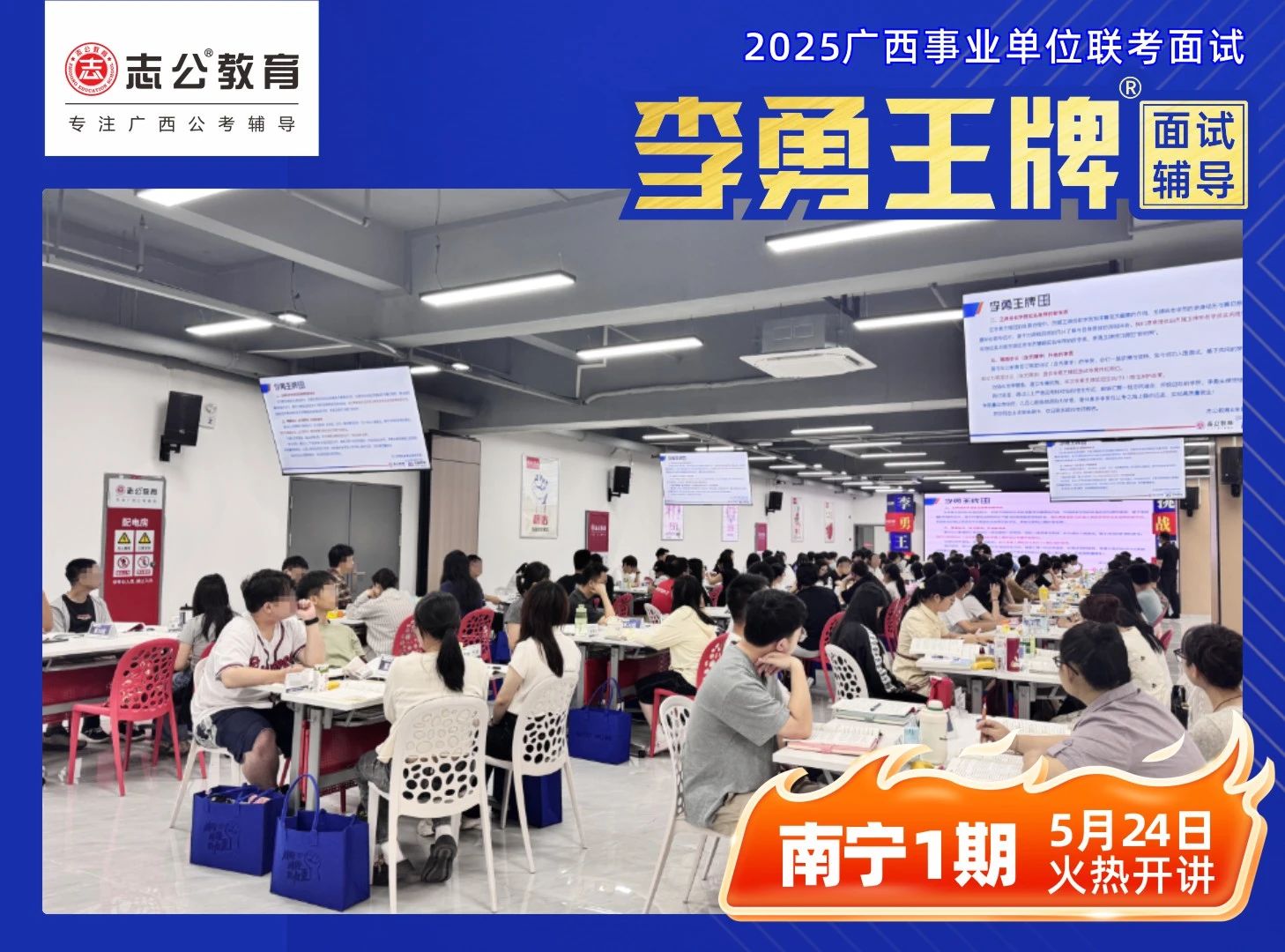 2025年廣西事業(yè)單位面試培訓課程 —— 李勇王牌®班在學員們的熱切期待中正式開班。學員們陸續(xù)簽到,為助力學員迅速適應學習節(jié)奏,志公教育精心準備了備考大禮包,內含歷年課程講義、高分技巧等實用資料。班主任團隊全程跟進,細致講解課程安排、考勤制度及學員服務,從學習到生活,全方位為學員保駕護航。