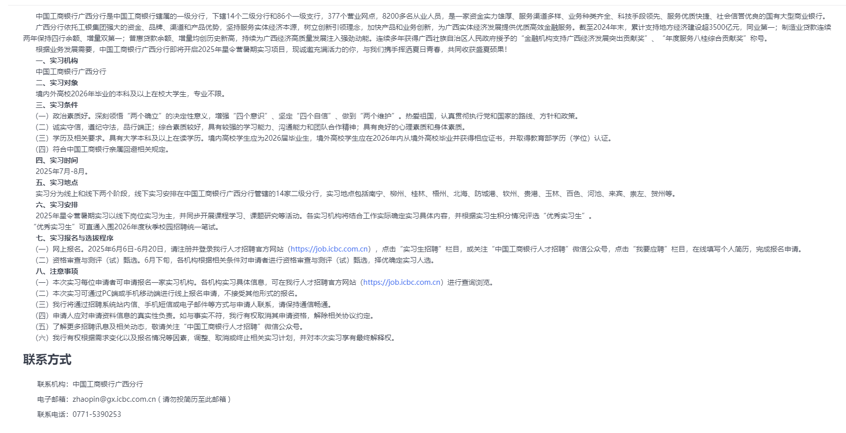 原文標(biāo)題:中國(guó)工商銀行廣西分行2025年星令營(yíng)暑期實(shí)習(xí)公告