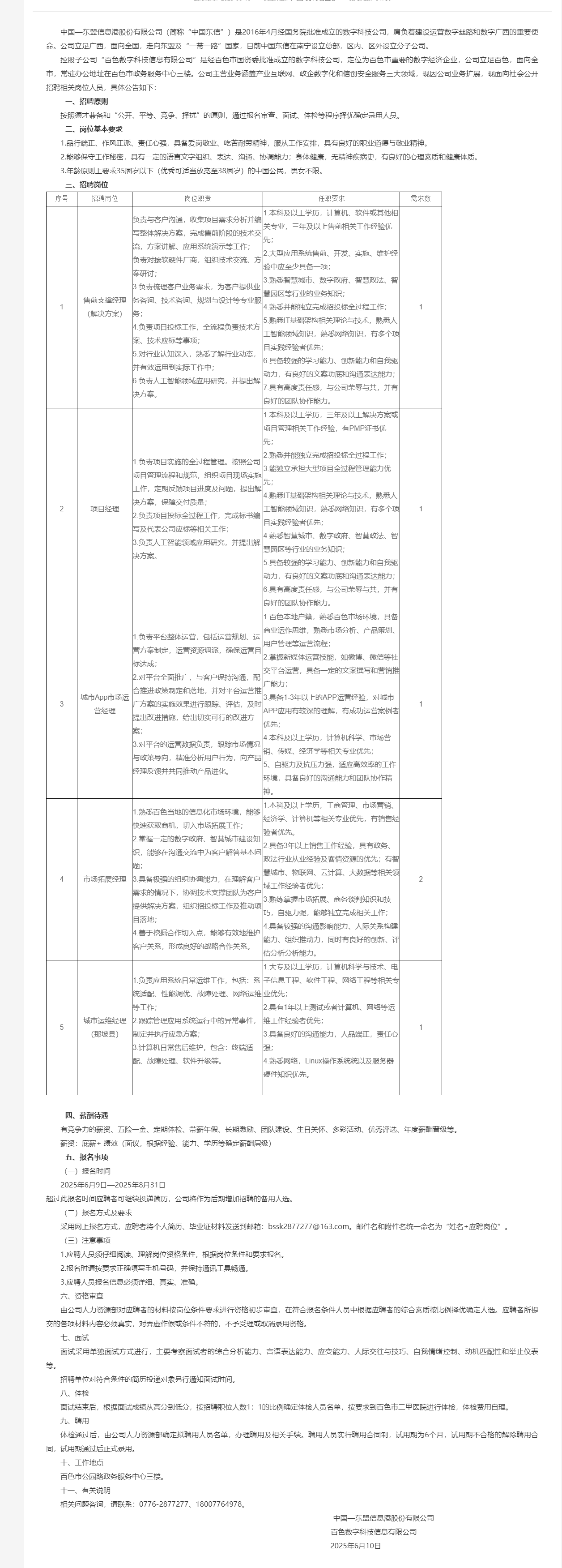 中國(guó)—東盟信息港股份有限公司2025年人才招聘公告