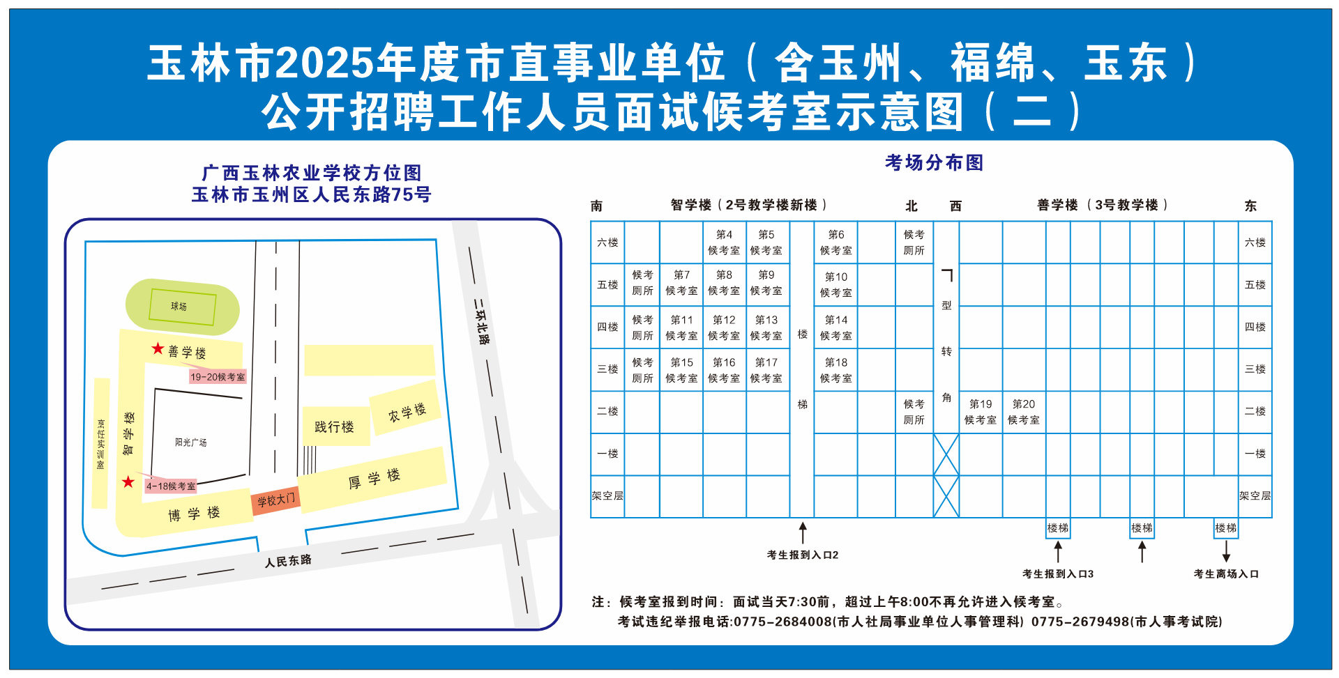 (一)因玉林市城區(qū)雨污分流改造項目施工,人民東路(金玉路至二環(huán)東路段)實行單向圍擋封閉。受封路影響,交通流量較大時,車輛通行緩慢。請各位考生關(guān)注實時路況,務(wù)必規(guī)劃好出行時間和路線,切勿因交通擁堵而影響考試。