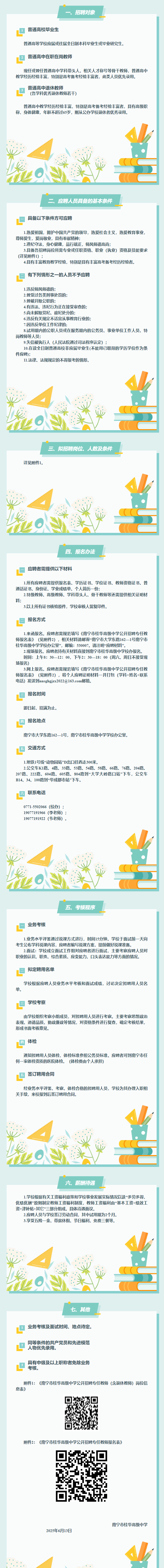南寧市桂華高級(jí)中學(xué)2025年公開(kāi)招聘高中各學(xué)科專(zhuān)任教師(含退休教師)的公告