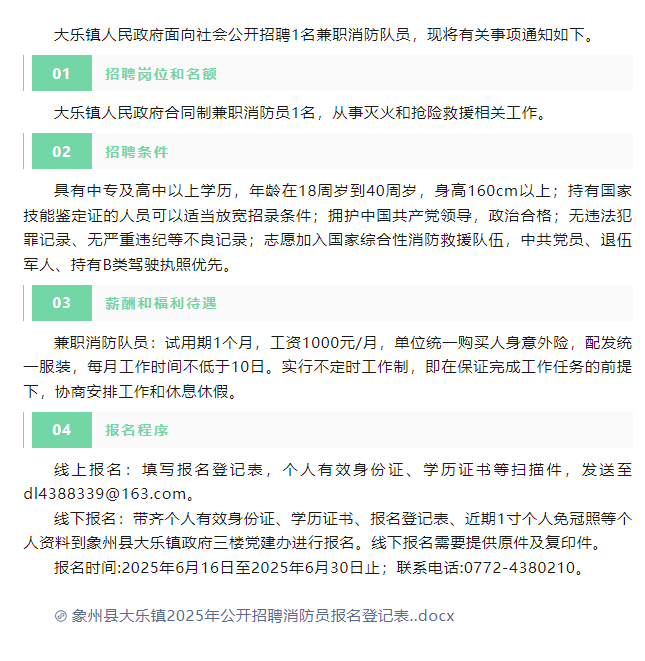 2025年來賓大樂鎮(zhèn)招聘消防隊員1人