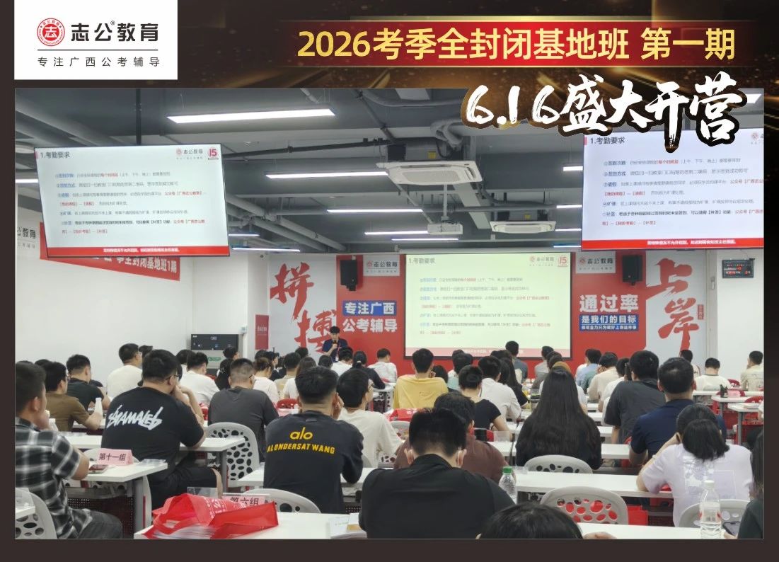 最后,要進(jìn)行的是摸底考試,志公教育26考季全封閉基地班第1期確實(shí)火爆,但是要知道廣西公考每年競爭對(duì)手更多人,只有通過考試才能知道自己在這么多學(xué)員中的水平情況,入營時(shí)的最初水平,更能知道自己在接下來的學(xué)習(xí)中是否有進(jìn)步!