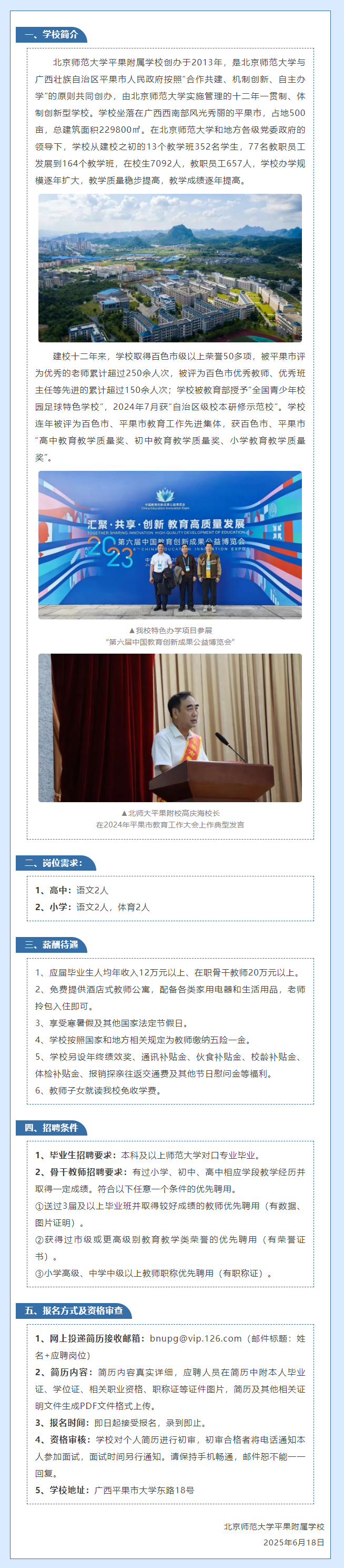 原文標題:北京師范大學平果附屬學校2025年秋季學期教師招聘啟事