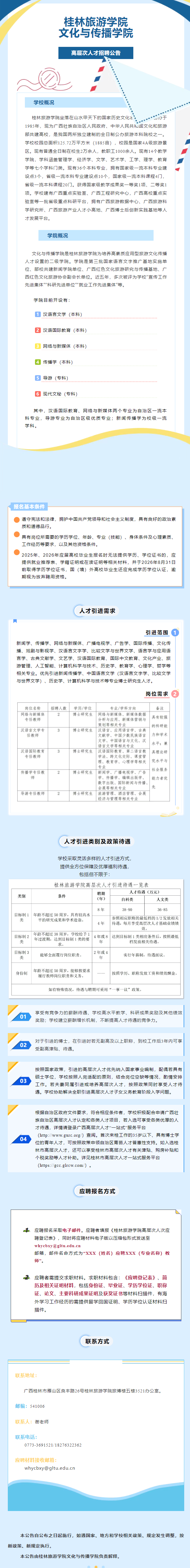 2025年桂林旅游學(xué)院文化與傳播學(xué)院高層次人才招聘公告