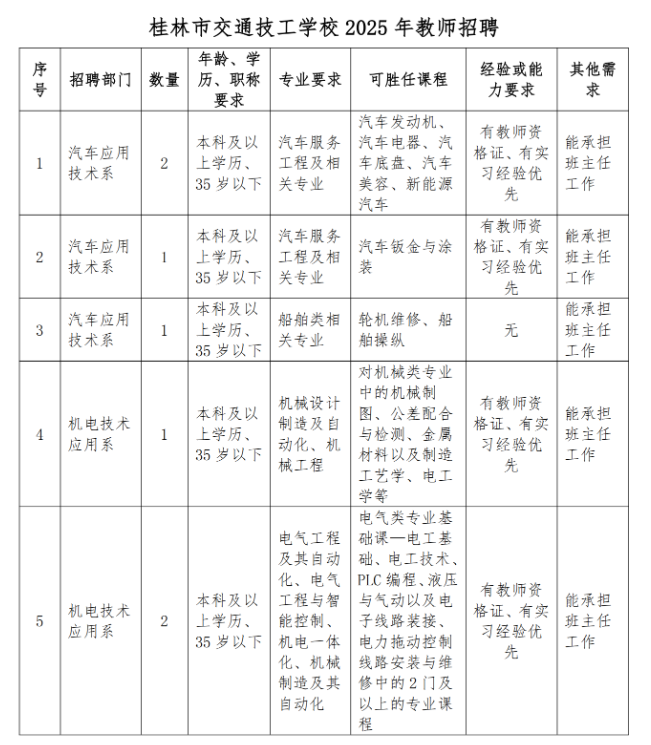 原文標題:桂林市交通技工學校2025年教師招聘公告