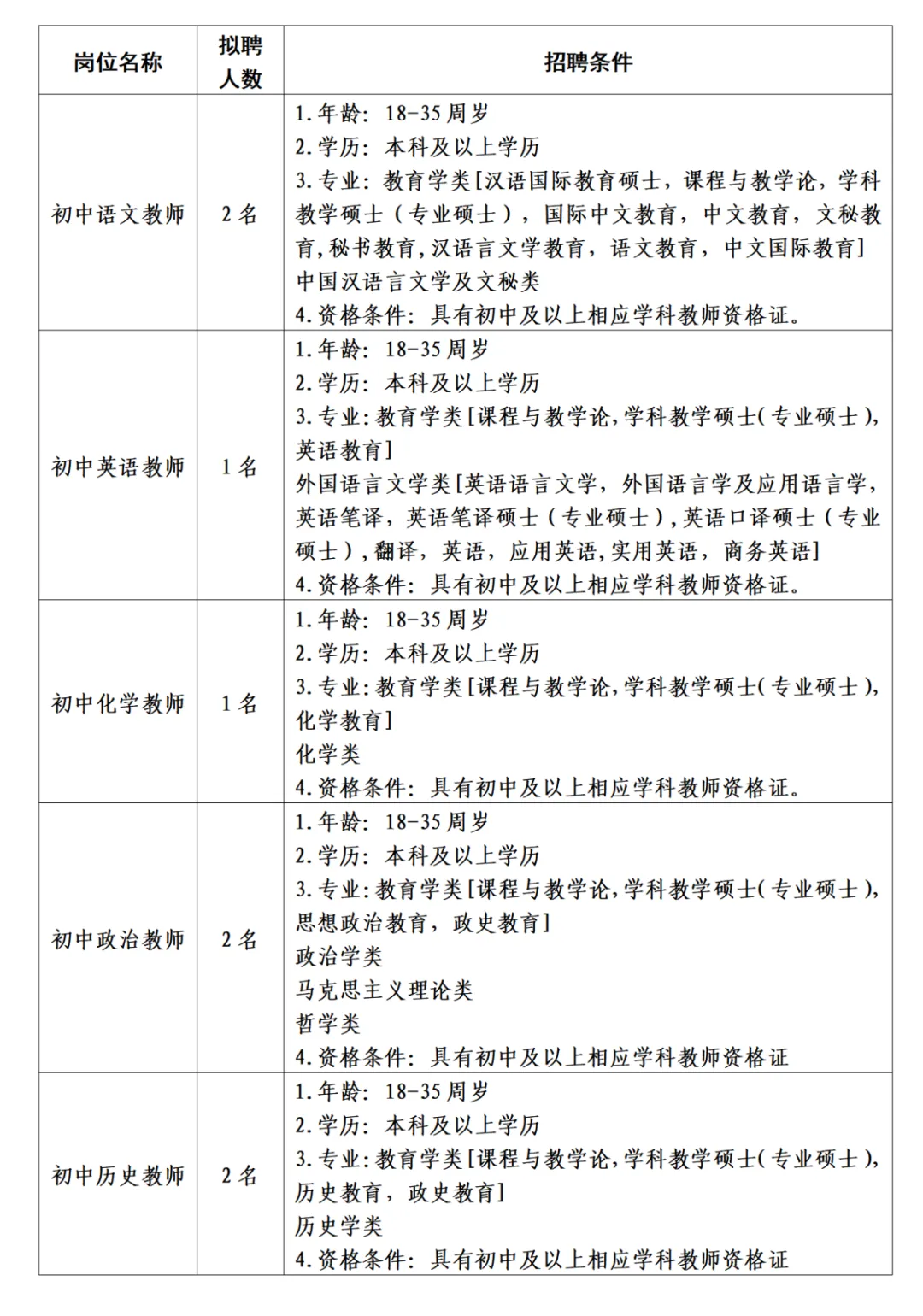 (六)18周歲以上、35周歲以下。有教學(xué)經(jīng)驗(yàn)豐富、碩士研究生或中級(jí)職稱以上的應(yīng)聘人員,年齡可適當(dāng)放寬到45周歲。