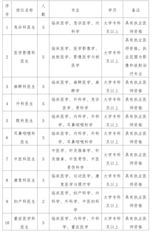 崇左市江州區(qū)人民醫(yī)院是由江州區(qū)政府舉辦的縣級(jí)公立醫(yī)院,規(guī)劃建設(shè)成為集醫(yī)療、保健、康復(fù)、教學(xué)、科研的國(guó)家二級(jí)甲等綜合性醫(yī)院,是崇左市人民醫(yī)院江州區(qū)分院,中山大學(xué)附屬第一醫(yī)院廣西醫(yī)院及廣西民族醫(yī)院技術(shù)協(xié)作單位。為進(jìn)一步完善人才隊(duì)伍,促進(jìn)醫(yī)院學(xué)科發(fā)展,根據(jù)醫(yī)院業(yè)務(wù)發(fā)展需要,我院現(xiàn)面向社會(huì)公開(kāi)招聘臨床醫(yī)生一批。具體招聘事宜如下: