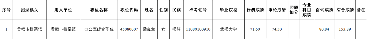 6.6 貴港市檔案館2025年度考試錄用公務(wù)員擬錄用人員名單