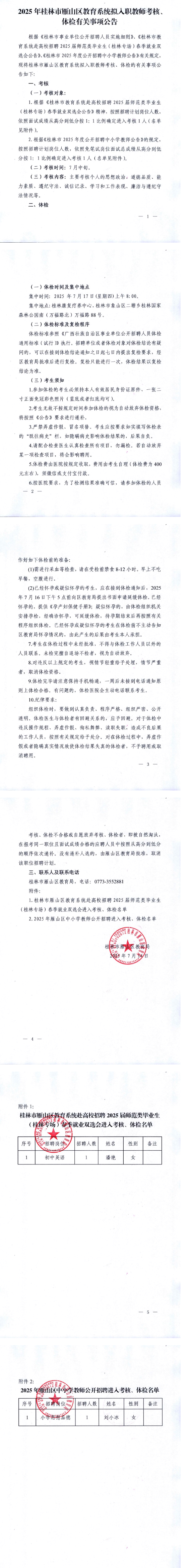 2025年桂林市雁山區(qū)教育系統(tǒng)擬入職教師考核、體檢有關(guān)事項公告