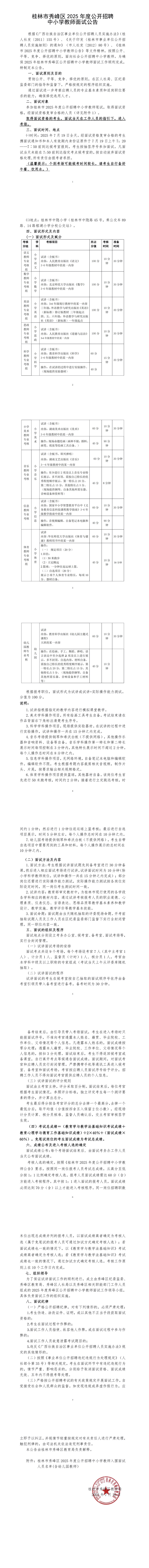 2025年桂林市秀峰區(qū)公開招聘中小學教師面試公告