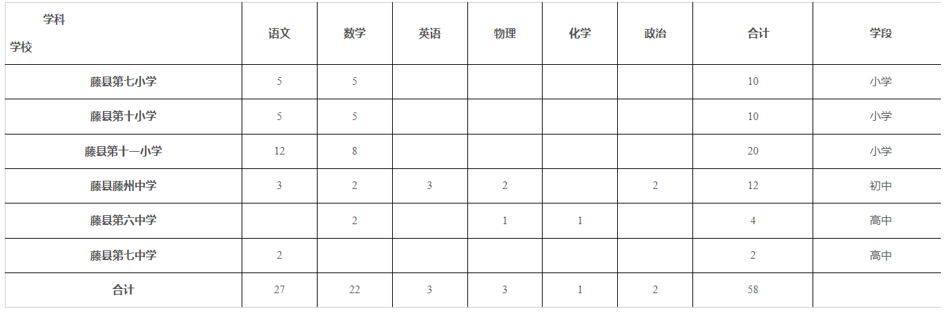 5.開考比例:各學(xué)科崗位計(jì)劃競(jìng)聘人數(shù)與通過報(bào)名資格審查的人數(shù)原則上需達(dá)到1:3的比例才能開考;如達(dá)不到1:3開考比例,確因工作急需補(bǔ)缺的,經(jīng)2025藤縣公開競(jìng)聘縣城學(xué)校教師崗位工作領(lǐng)導(dǎo)小組研究同意,可按實(shí)際報(bào)名人數(shù)開考或適當(dāng)遞減比例開考。