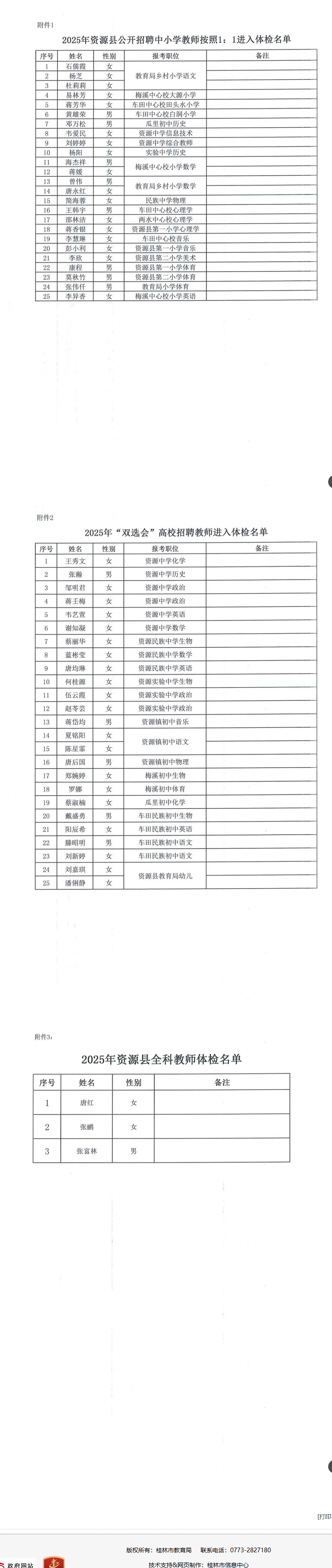 2025年資源縣教育系統(tǒng)擬聘用人員體檢有關事項的公告