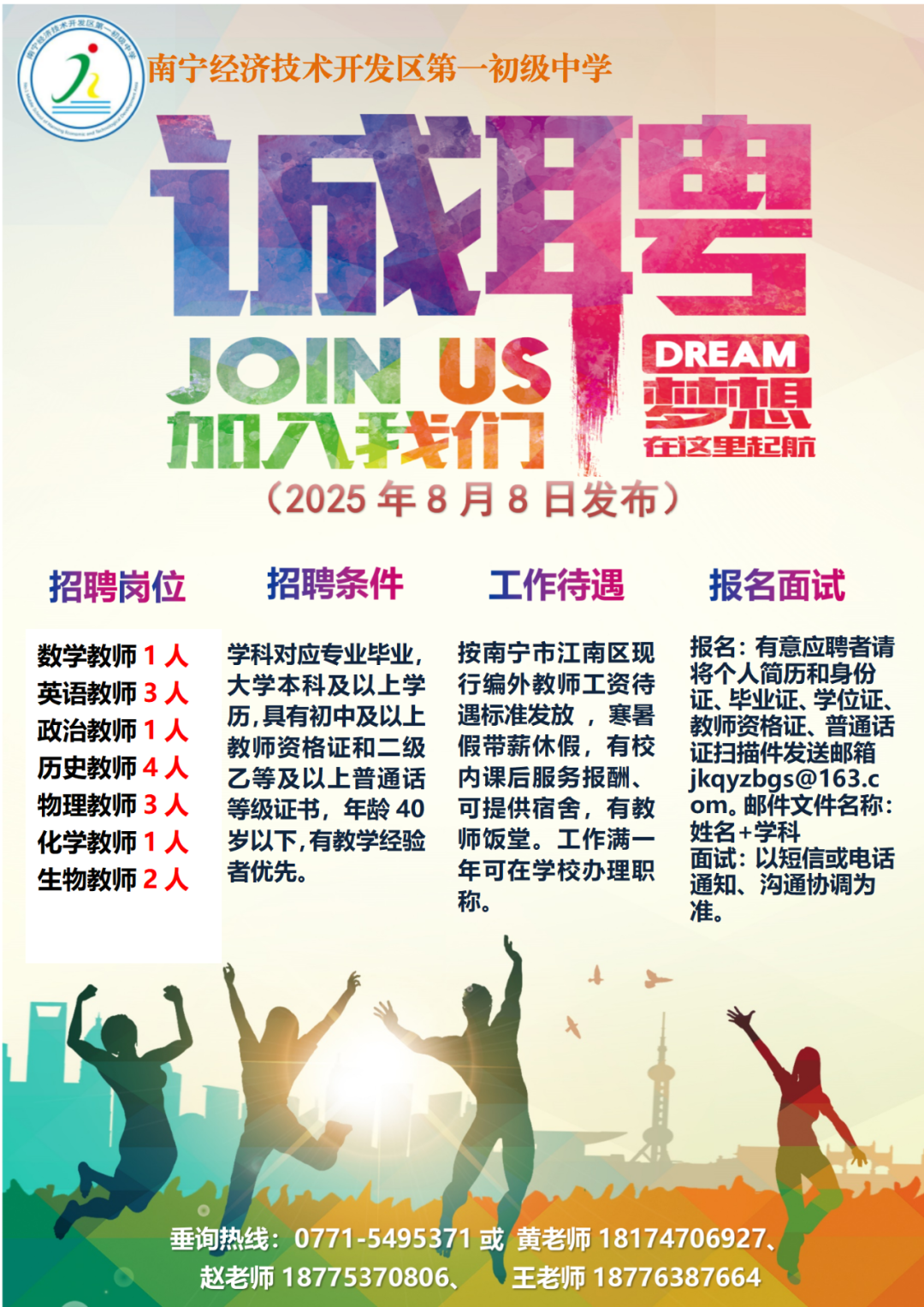 2025年秋季學期南寧經(jīng)濟技術開發(fā)區(qū)第一初級中學公開招聘編外教師15人
