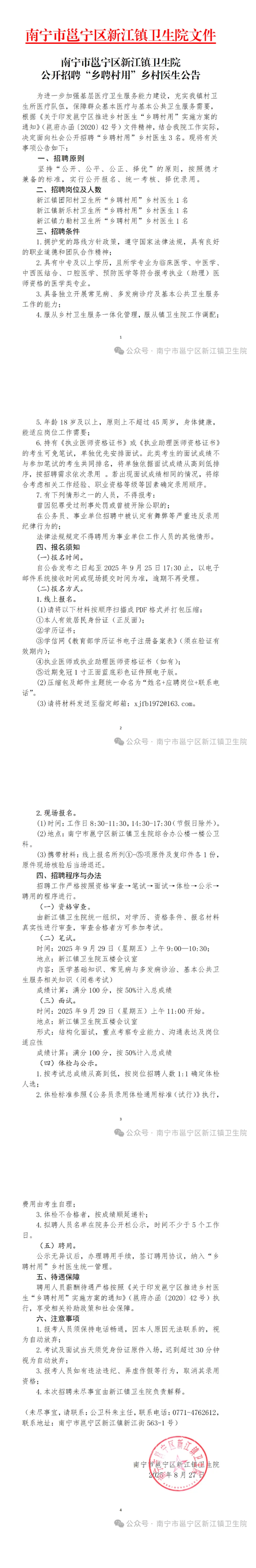 2025年南寧市邕寧區(qū)新江鎮(zhèn)衛(wèi)生院公開招聘“鄉(xiāng)聘村用”鄉(xiāng)村醫(yī)生公告