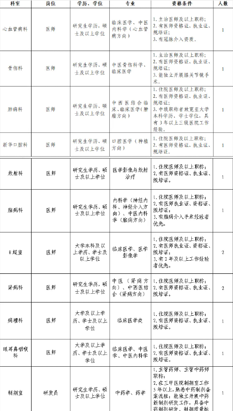 根據(jù)醫(yī)院高質(zhì)量發(fā)展需要,我院誠聘衛(wèi)生醫(yī)療相關(guān)專業(yè)領(lǐng)域的人才,歡迎投簡(jiǎn)歷應(yīng)聘。