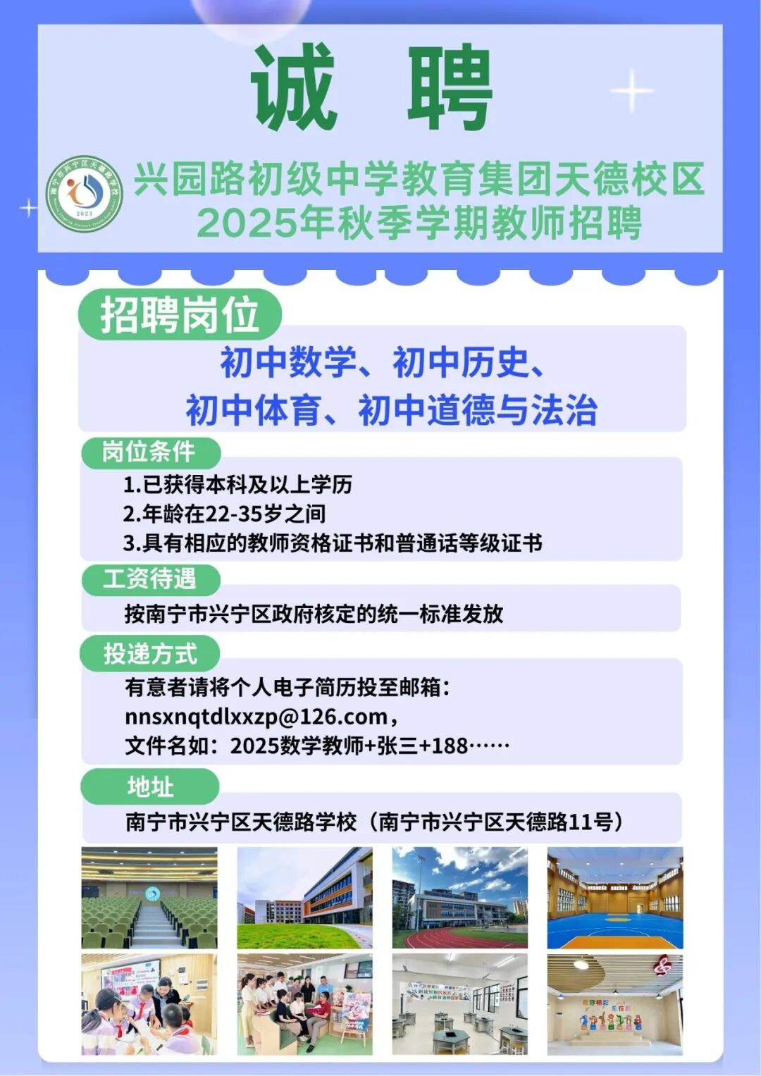 2025年南寧市興園路初級(jí)中學(xué)教育集團(tuán)天德校區(qū)秋季學(xué)期教師招聘