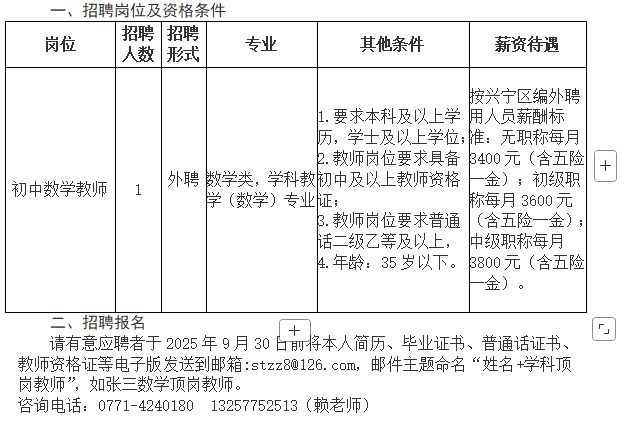 原文標題:南寧市興寧區(qū)三塘鎮(zhèn)四塘中學(xué)2025年秋季學(xué)期招聘啟事
