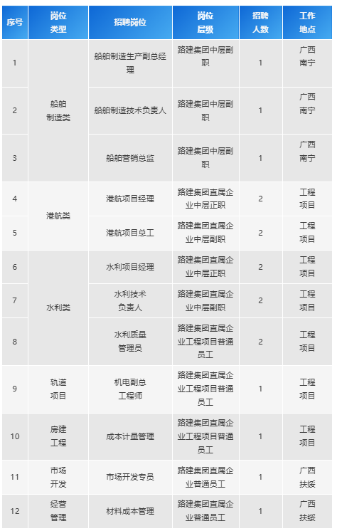 根據(jù)廣西路建集團(tuán)發(fā)展需要,現(xiàn)面向社會(huì)公開(kāi)招聘關(guān)鍵崗位人才,誠(chéng)邀有志之士與廣西路建集團(tuán)共創(chuàng)美好未來(lái)。