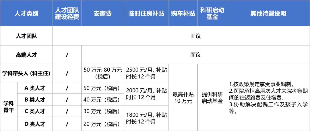 聘用為急需緊缺專業(yè)崗位醫(yī)師(緊缺專業(yè)包括:重癥醫(yī)學科、麻醉科、感染性疾病科、兒科、急診醫(yī)學科、病理科、精神科、產科、神經外科、超聲科)的碩士研究生或符合“雙一流”建設高校及“雙一流”建設學科碩士研究生,給予5-10萬安家費。