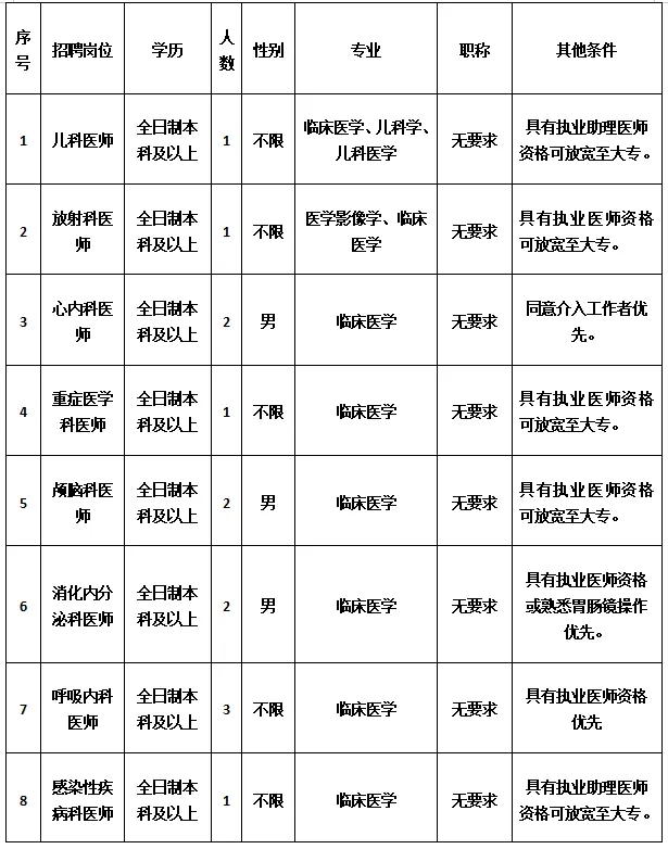 6. 年齡18-35周歲,具有主治醫(yī)師資格可放寬至45周歲。