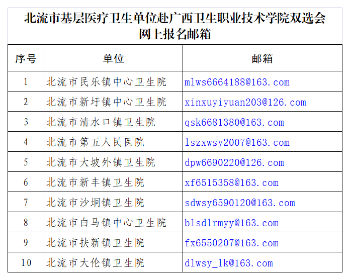4.北流市基層醫(yī)療衛(wèi)生單位赴廣西衛(wèi)生職業(yè)技術學院雙選會網(wǎng)上報名郵箱