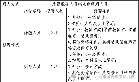 符合條件的應聘人員請于2025年11月4日至11月10日期間進行報名,由本人填寫《北海市政府機關幼兒園后勤人員控制數(shù)工作人員報名登記表》(見附件),連同身份證、畢業(yè)證書及崗位要求的資格證等掃描件發(fā)送至郵箱bhszfjy@163.com,逾期不予受理。