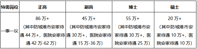 醫(yī)院為符合醫(yī)院及防城港市引進(jìn)政策的人才給予人才激勵(lì):待遇如下(稅前):