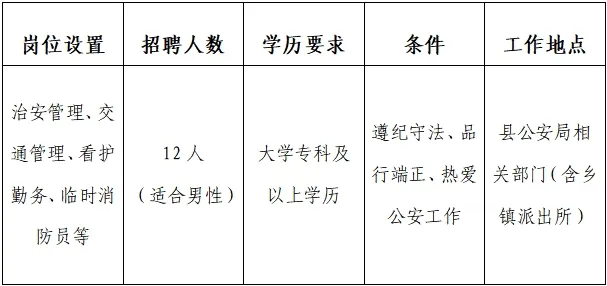 此次招聘的輔警屬勞動合同用工性質(zhì),由扶綏縣公安局統(tǒng)一招聘,安排在縣公安局相關(guān)部門(具體職位安排如下)。