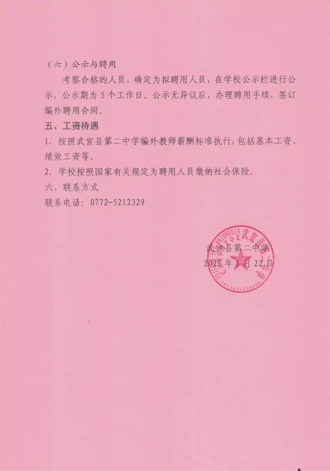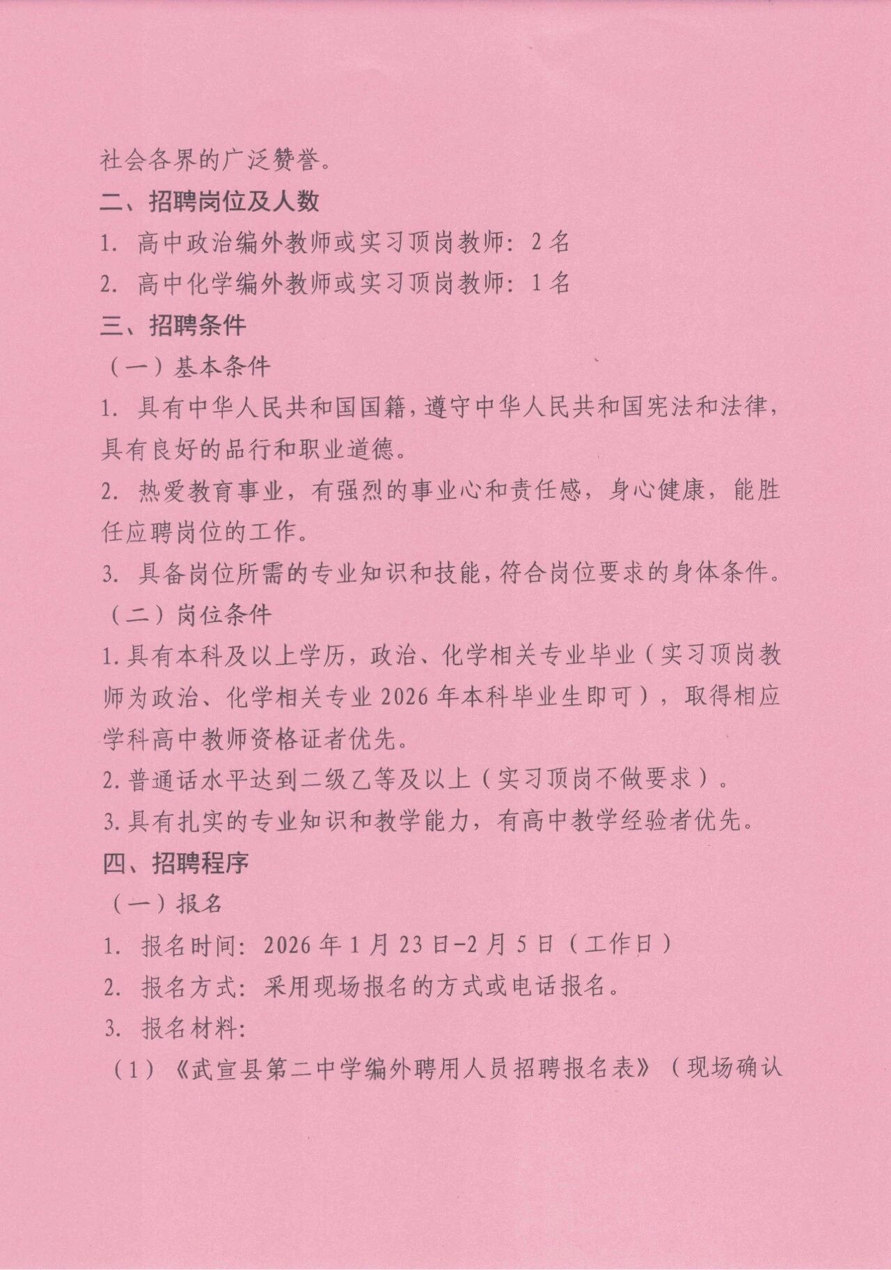 2026年來(lái)賓武宣縣第二中學(xué)編外(頂崗)教師招聘3人