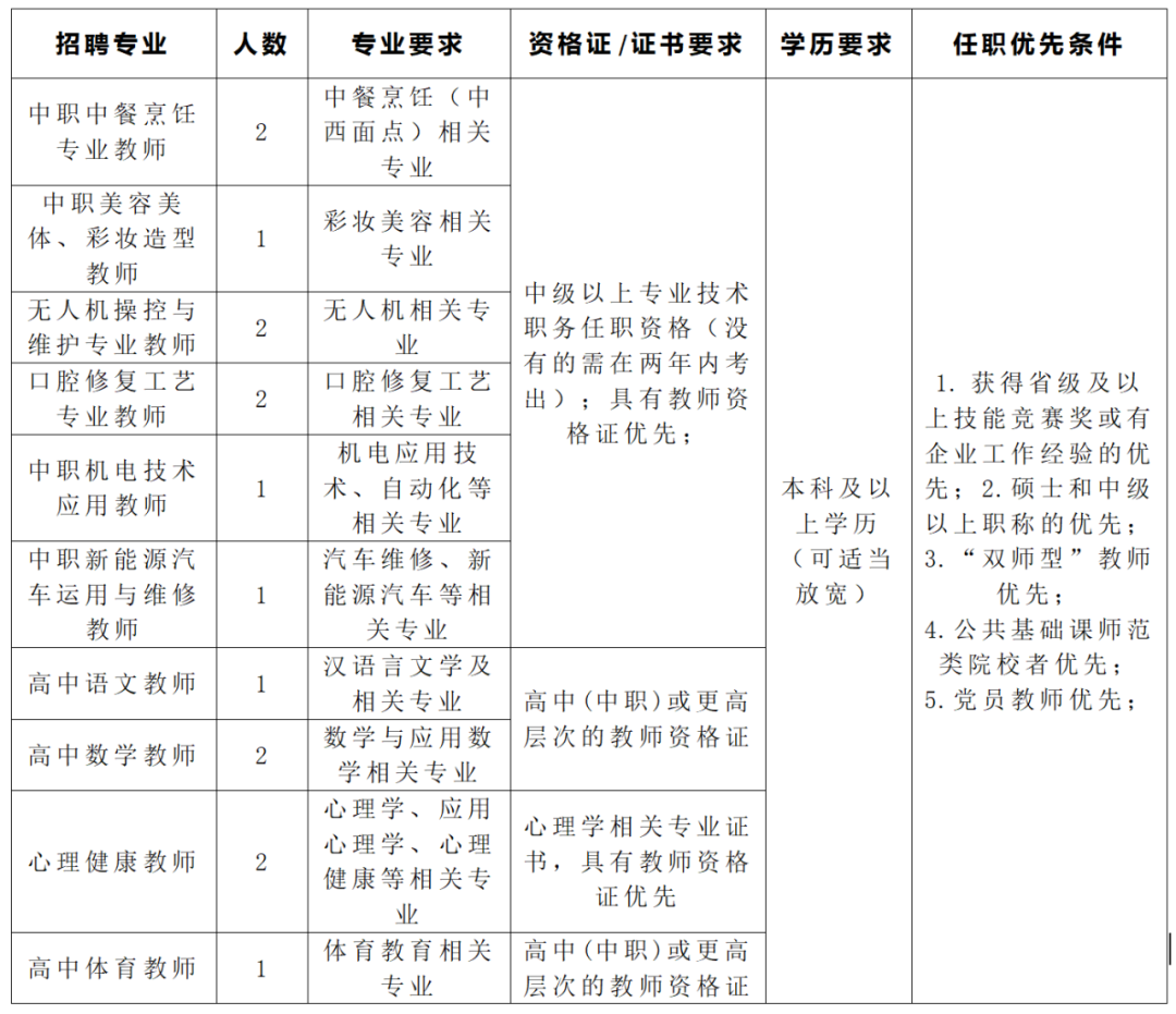 機電應用技術(shù)、中餐烹飪、新能源汽車檢測與維修、平面設(shè)計、社會文化藝術(shù)、美發(fā)與形象設(shè)計專業(yè),各1人。