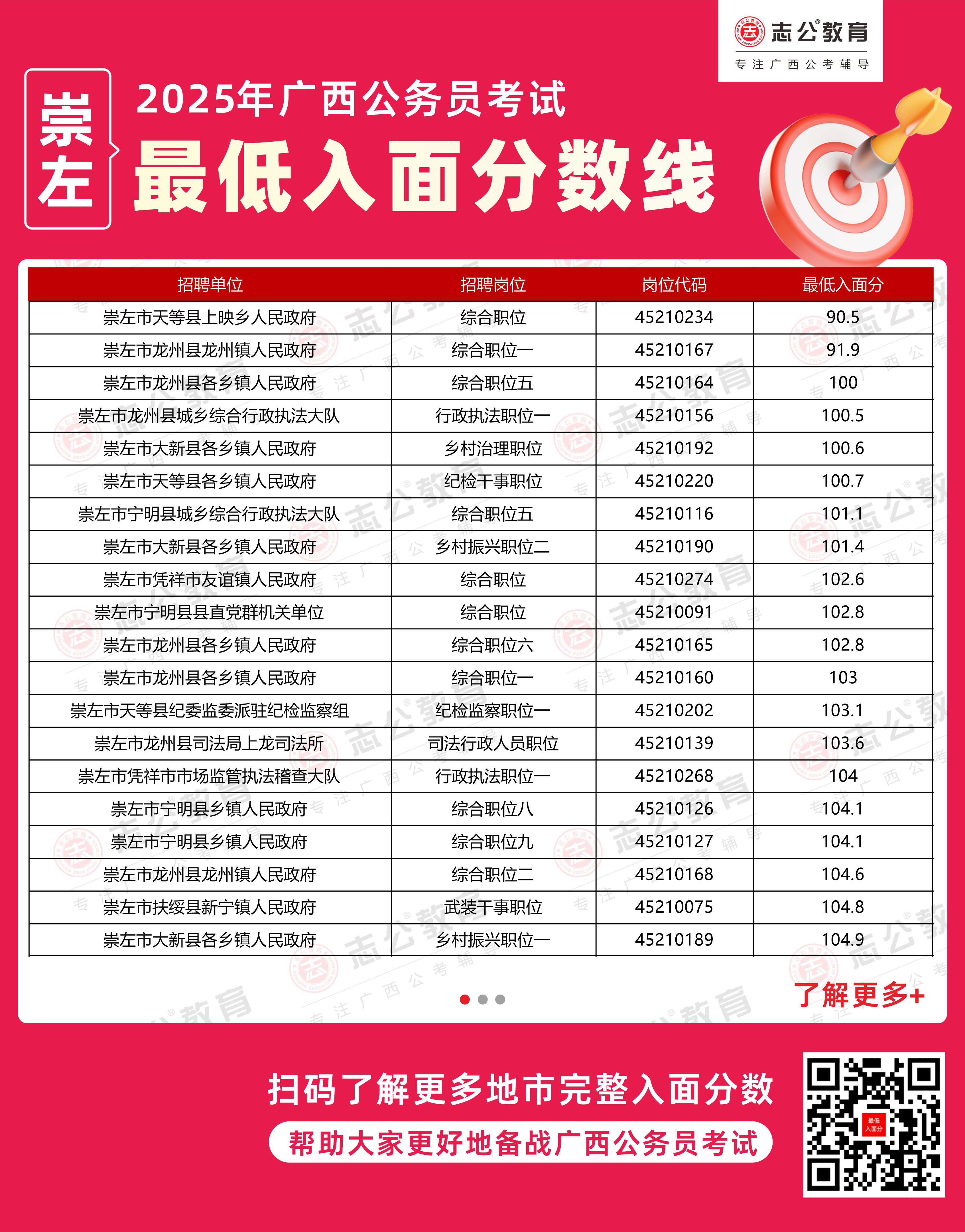 (點擊下載更多2025年崇左公務(wù)員最低入面分?jǐn)?shù),數(shù)據(jù)整理自官方發(fā)布的面試資格審查公告)