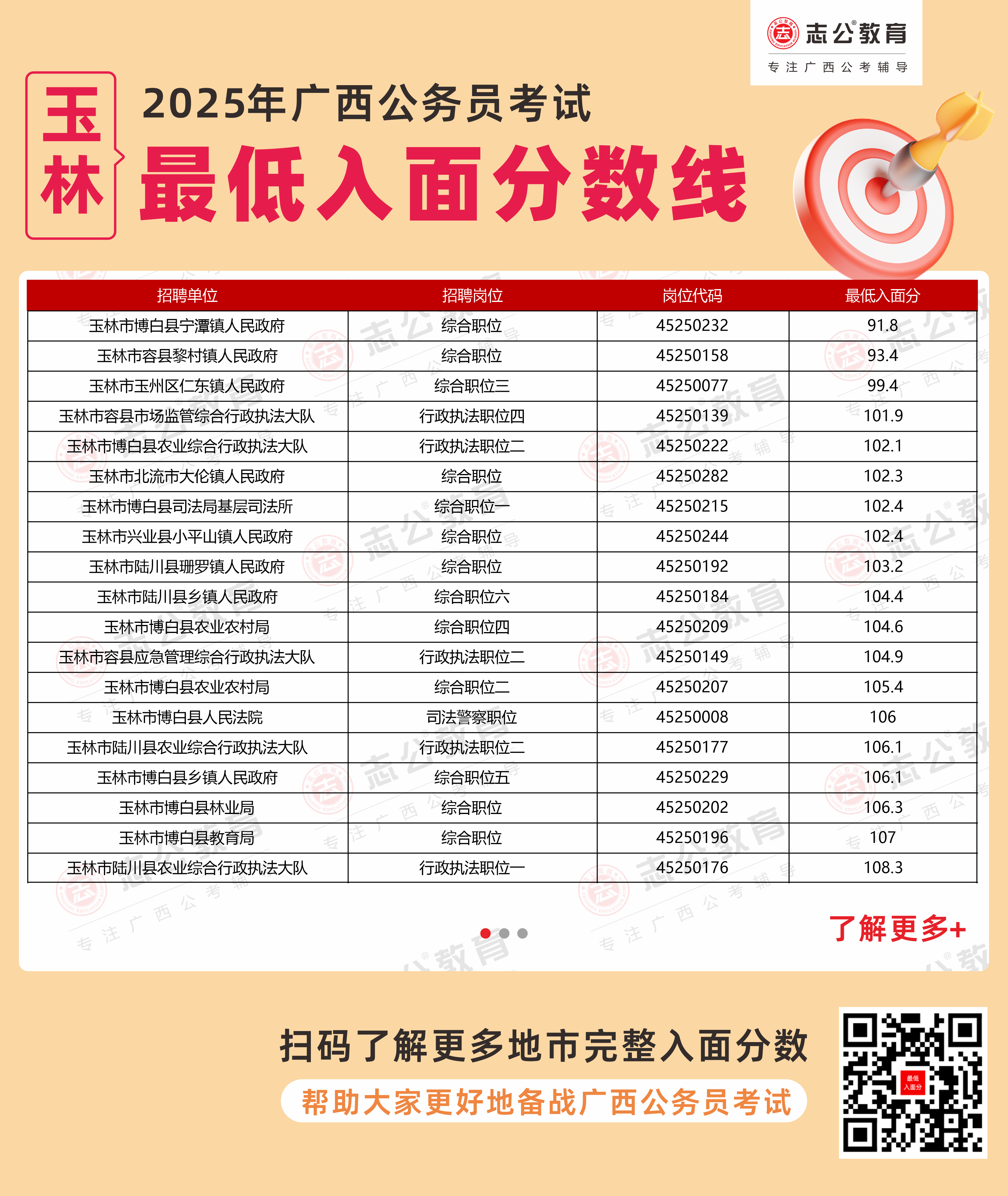 (點擊下載更多2025年玉林公務(wù)員最低入面分數(shù),數(shù)據(jù)整理自官方發(fā)布的面試資格審查公告)