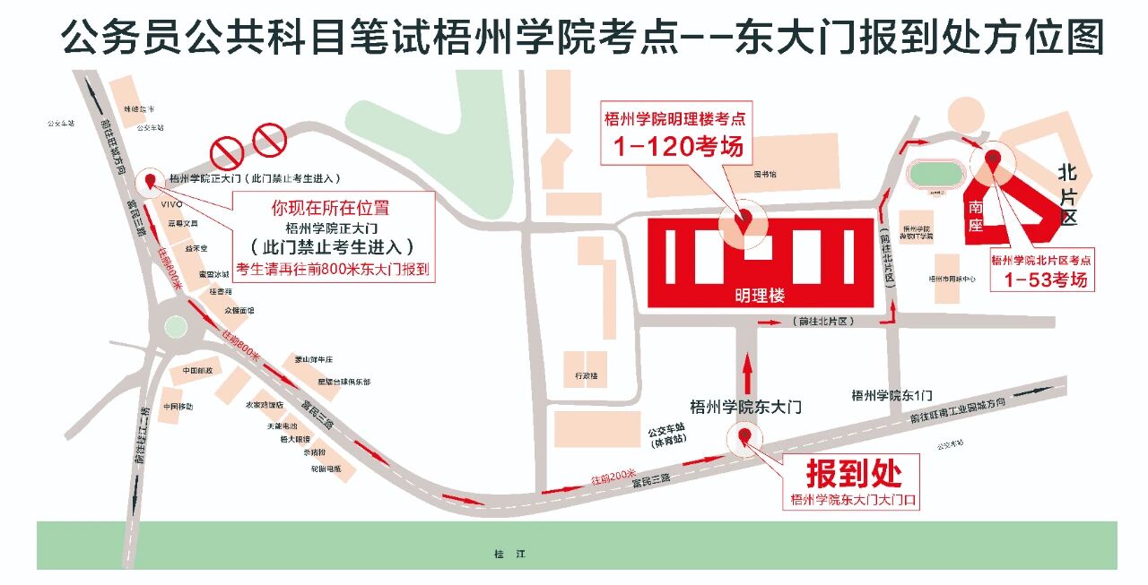 (九)梧州學院明理教學樓、梧州學院北片區(qū)(萬秀區(qū)富民三路82號)特別提醒:明理教學樓和北片區(qū)屬不同考點,請考生看清楚準考證,切勿走錯考場。