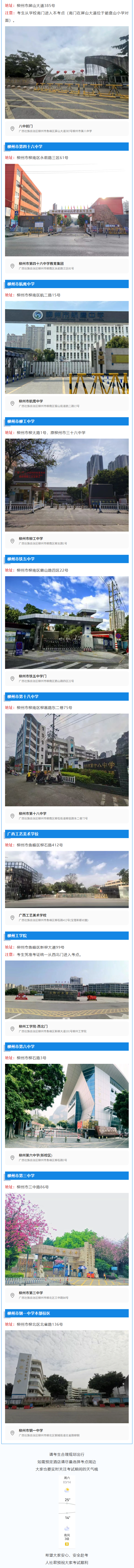 (五)建議考生提前熟悉考點(diǎn)位置和交通路線??键c(diǎn)學(xué)校不允許外來車輛出入,考生須自行解決停車問題。本次考試參考人數(shù)較多,考點(diǎn)較為分散,個別考點(diǎn)有多個校門口,建議考生在考試前一天實(shí)地察看考點(diǎn),確認(rèn)考點(diǎn)入口位置和前往考場線路,防止走錯考點(diǎn)考場,并請各位考生充分考慮考點(diǎn)周邊交通通行情況和停車場地容量,合理安排出行方式(建議采用公共交通方式出行),預(yù)留充足時間,確??荚嚠?dāng)天按時到達(dá)。親友接送車輛,請將考生送達(dá)后迅速駛離考點(diǎn)區(qū)域,避免交通擁堵。請考生遵守交通規(guī)則,服從現(xiàn)場交警的指揮,做到文明駕車,文明出行,文明赴考。