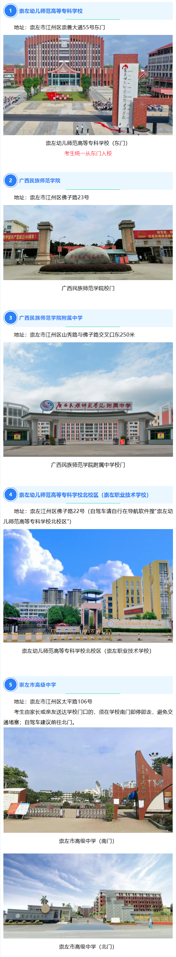 1.崇左考區(qū)共設(shè)5個考點,請考生提前熟悉各自考點位置、周邊環(huán)境及交通情況,考試當(dāng)天車流較大,建議提前規(guī)劃出行路線,預(yù)留充足時間。