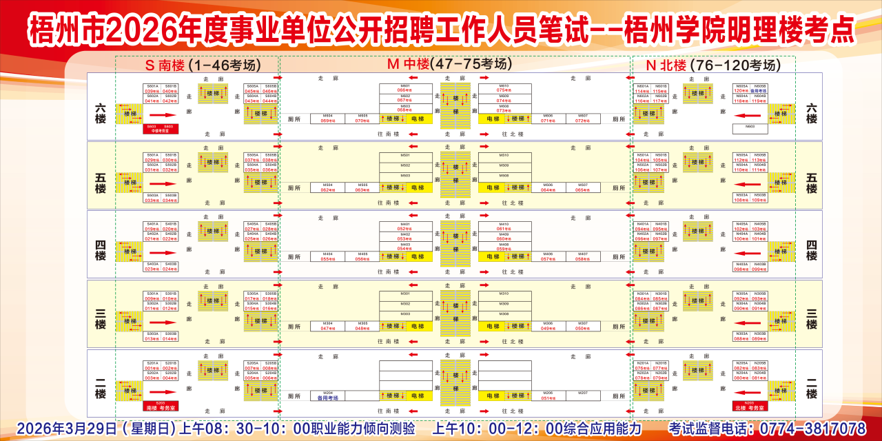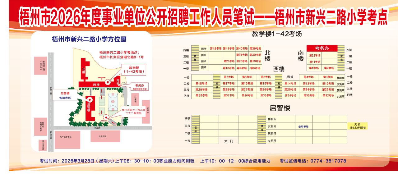 梧州考區(qū)3月28日綜合管理(A類)考試的考點(diǎn)學(xué)校:三中、四中、五中、十五中、十七中、新興小學(xué)、新興二路小學(xué)。3月29日社會(huì)科學(xué)專技(B類)、自然科學(xué)專技(C類)、中小學(xué)教師(D類)和醫(yī)療衛(wèi)生(E類)考試的考點(diǎn)學(xué)校:一中高中部、三中、四中、五中、七中、十五中、十七中、梧州高中、梧州學(xué)院明理教學(xué)樓、新興小學(xué)、新興二路小學(xué)。