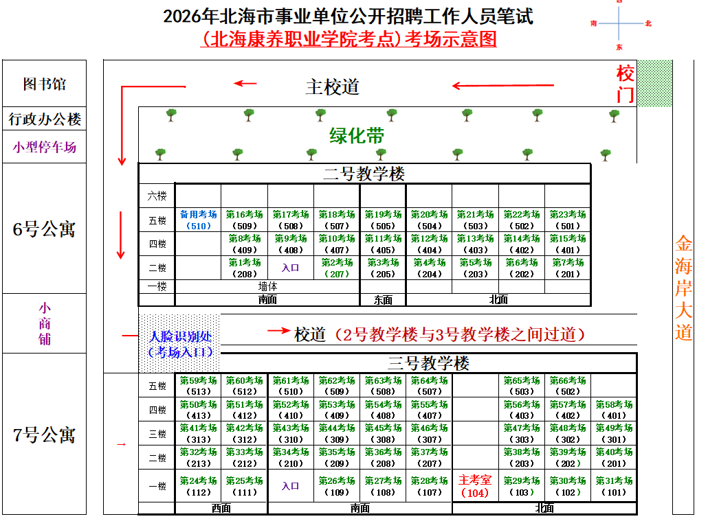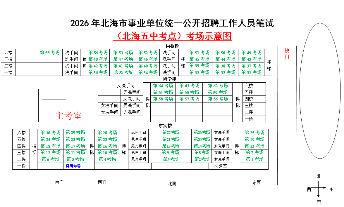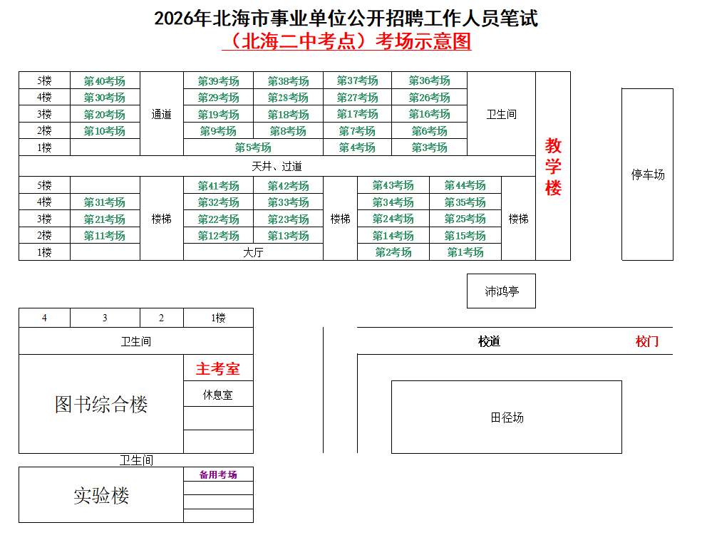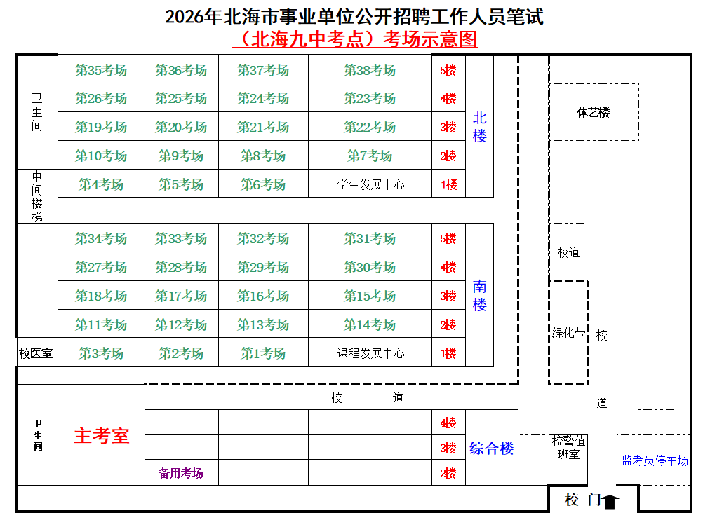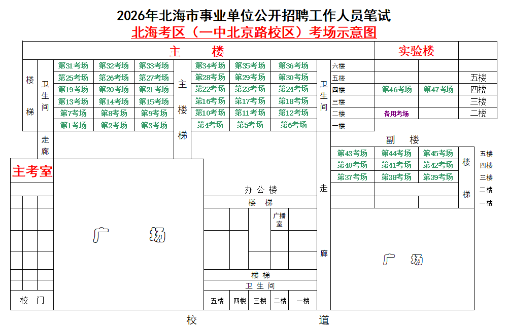 (一)3月28日進(jìn)行綜合管理類(A類)考試,北海市共設(shè)一個(gè)考點(diǎn),考點(diǎn)考場布置為: