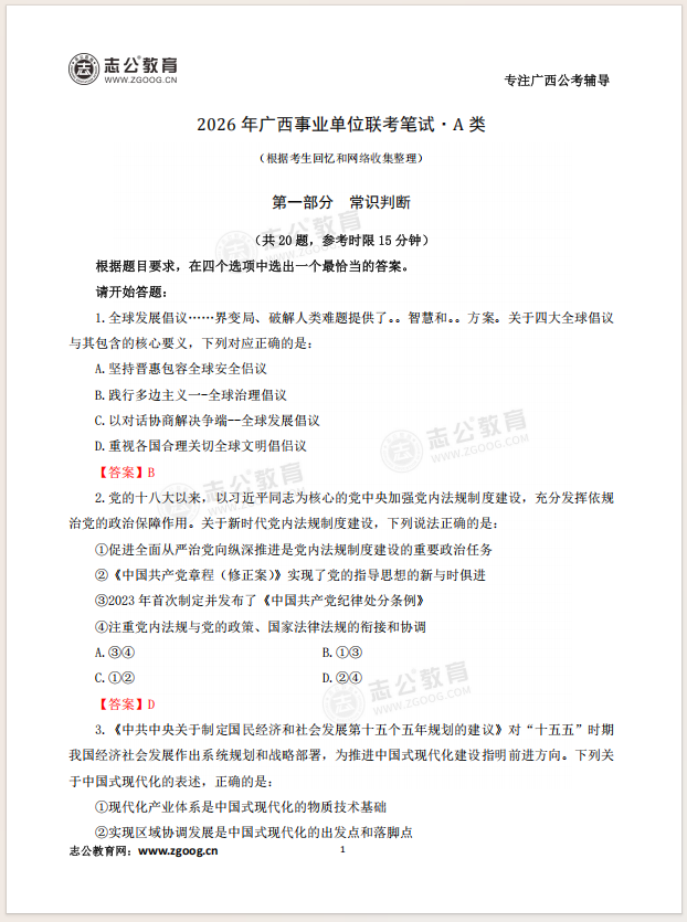 快看!2026年廣西事業(yè)單位聯(lián)考筆試A類考題已出